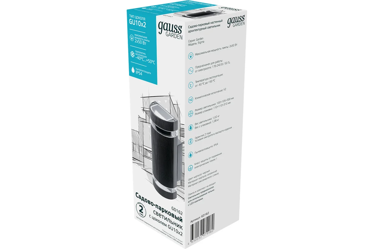 Технические характеристики Gauss Enigma 2xGU10, 100х105х300мм GD162