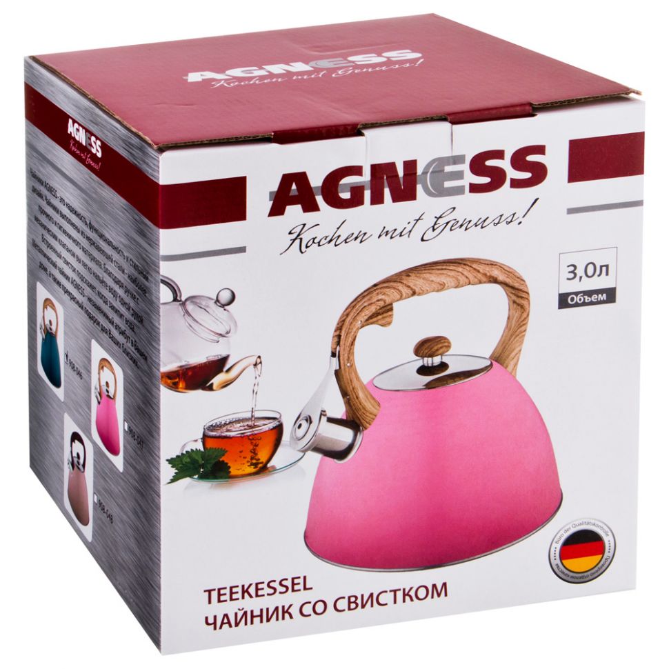 ЧАЙНИК AGNESS СО СВИСТКОМ 3,0 Л, ИНДУКЦИОН.КАПСУЛЬНОЕ ДНО