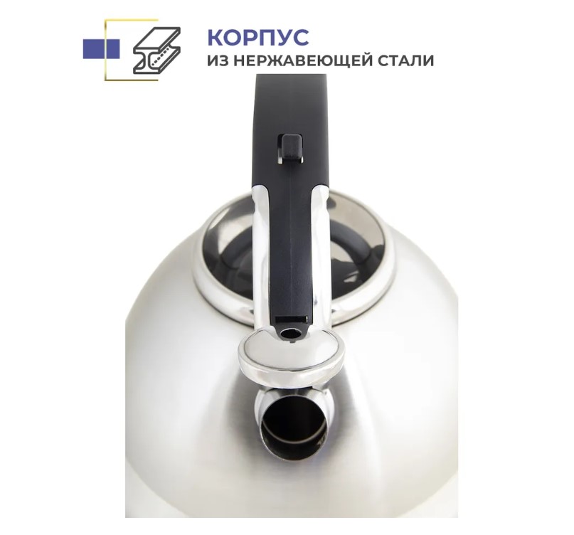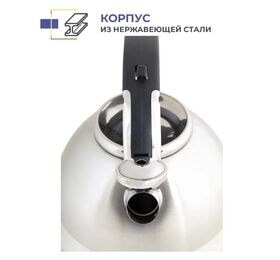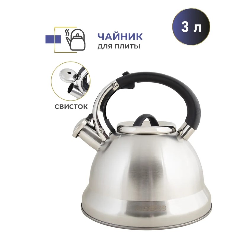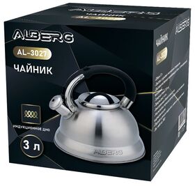 Полезный объем: 3 л Общий объем: 3.3 л Свисток с курковым механизмом открывания Высококачественная нержавеющая сталь с сатинированной полировкой Толщина стенок: 0.5 мм Толщина дна: 4 мм Фиксированная бакелитовая ручка Многослойное термоаккумулирующее капсулированное индукционное дно Подходит для всех видов плит, включая индукционные Вес чайника: 900 г