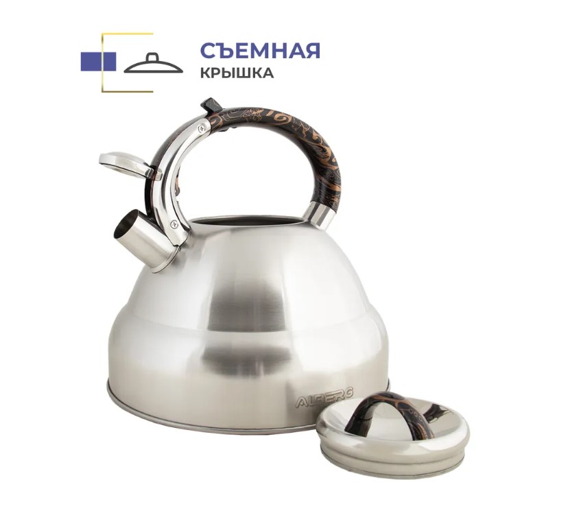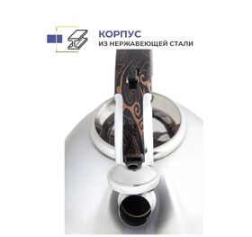 Чайник подходит для всех видов плит, включая индукционные. Корпус чайника выполнен из высококачественной нержавеющей стали.