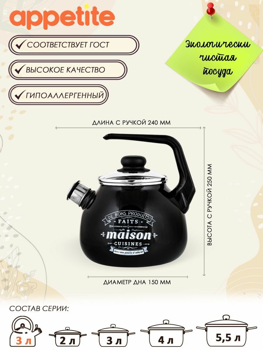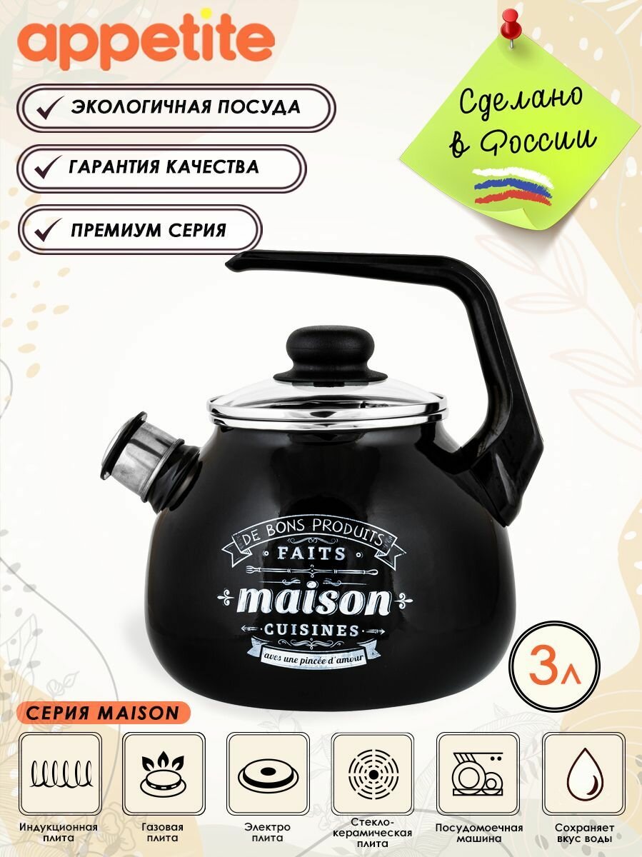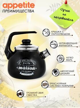 Чайник 3,0л со свистком Maison ТМ Appetite имеет объём: 3.0 л.
