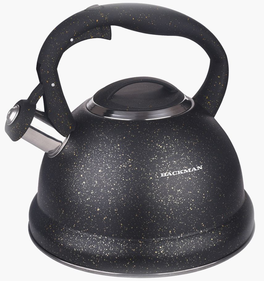 Чайник со свистком для плиты 3 литра из нержавеющей стали. Изготовлен из высококачественной нержавеющей стали, устойчивой к коррозии и сильным перепадам температуры. Благодаря цветному покрытию корпуса «Marble» чайник впишется в любой кухонный интерьер. Громкий свисток удобно и широко открывается с помощью кнопки на ручке чайника. Капсулированное индукционное дно позволяет использовать чайник на газовых, электрических и индукционных плитах. Толстое дно способствует быстрому закипанию воды и поддерживает температуру длительное время. Эргономичная фиксированная ручка, удобно ложится в руку, а благодаря приятному на ощупь прорезиненному покрытию ручка не нагревается.