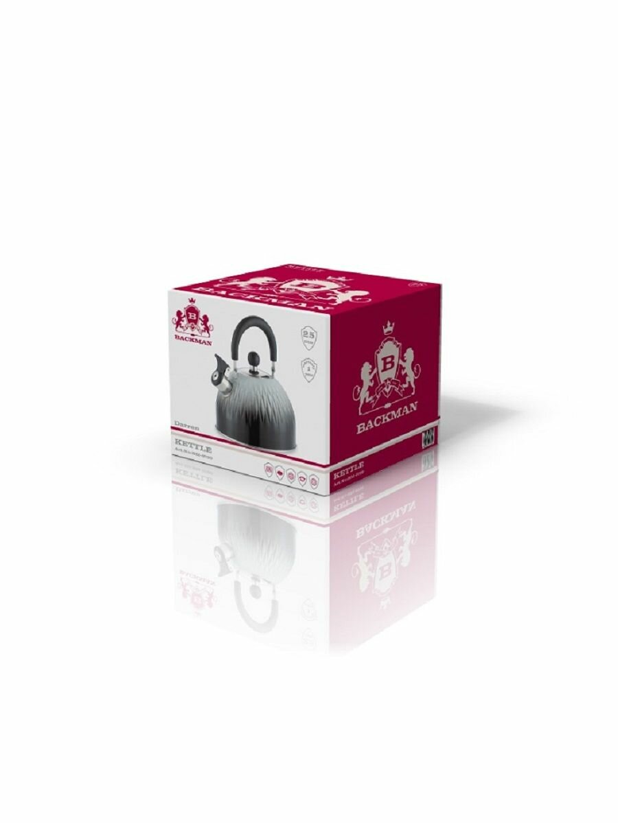 Чайник со свистком BACKMAN BM-0720 — это стильный и функциональный аксессуар для вашей кухни. С объемом 2,5 литра, он идеально подходит для приготовления горячих напитков как для индивидуального использования, так и для небольших компаний. Изготовленный из нержавеющей стали, этот чайник отличается прочностью и долговечностью. Индукционное дно обеспечивает быстрое и равномерное нагревание, что позволяет сократить время на кипячение воды. Внешнее антипригарное цветное покрытие «градиент» не только придает чайнику современный и привлекательный вид, но и облегчает уход за ним. Подвижная комбинированная ручка обеспечивает удобство при использовании и наливании, а свисток оповестит вас, когда вода закипит, что делает процесс приготовления еще более комфортным. Чайник BACKMAN BM-0720 поставляется в подарочной упаковке, что делает его отличным вариантом для подарка друзьям или близким. Этот чайник станет не только практичным помощником на вашей кухне, но и стильным элементом декора, который подчеркнет ваш вкус.