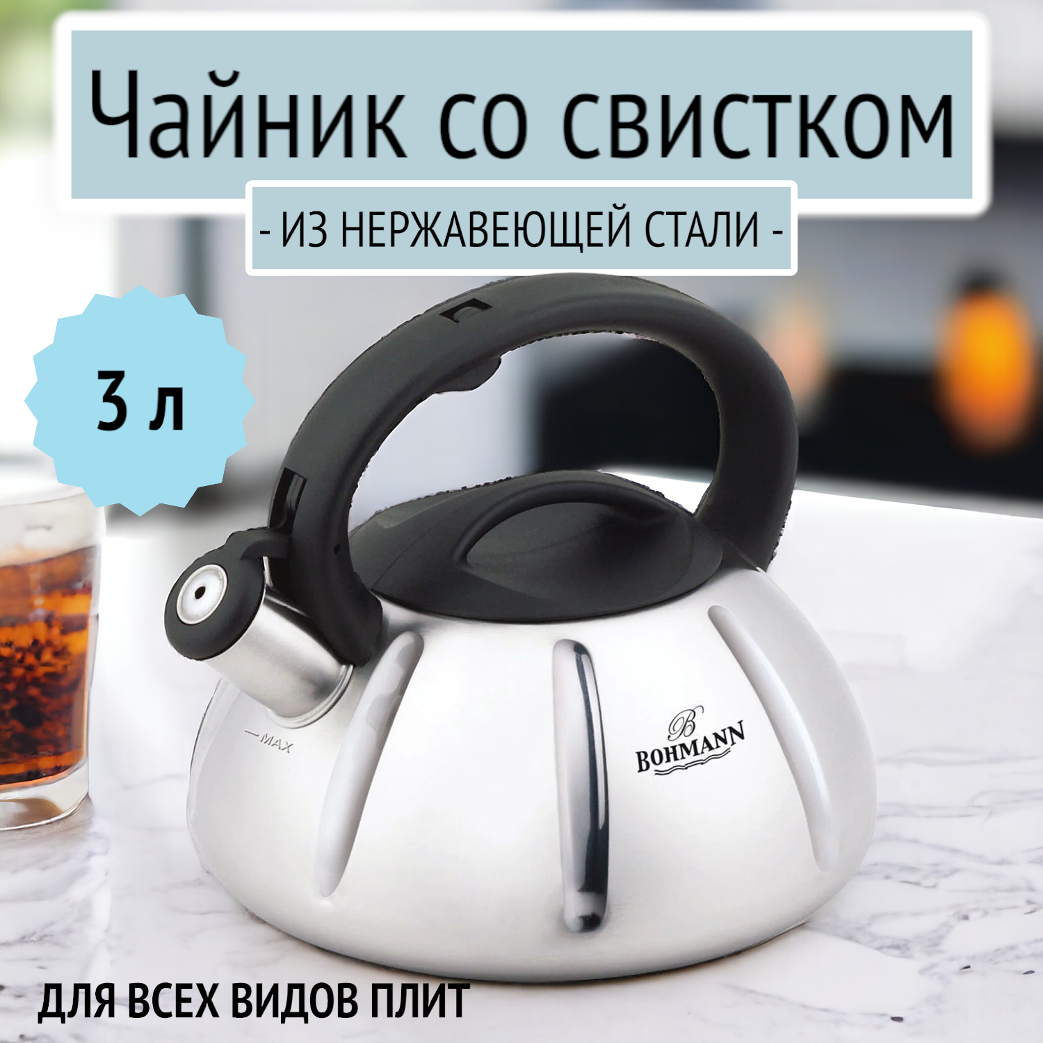 Чайник 3 л со свистком из нержавеющей стали Bohmann, BH-9954 - это высококачественный кухонный аксессуар, который станет незаменимым помощником на вашей кухне.