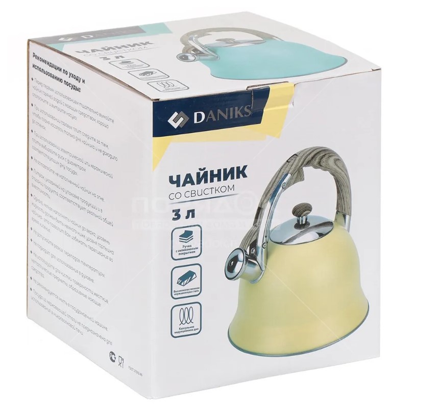 Бренд Daniks Страна продавца Китай Объем, л 3 Материал корпуса нержавеющая сталь Эмалированное покрытие нет Со свистком да Термоизолированная ручка да