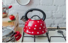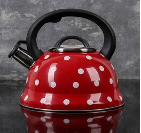 Чайник со свистком Доляна «Горошек», 2,8 л, цвет красный Габариты и вес Вес брутто 660 г Особенности Цвет Красный Объём, л 2.8 Рисунок Да Материал Нержавеющая сталь Тип плиты Для газовой плиты, Для галогенной плиты, Для стеклокерамической плиты, Для электрической плиты Теплоизолированная ручка Да