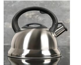 Чайник со свистком Доляна «Рио», 2,8 л, фиксированная ручка, цвет матовый Габариты и вес Размер (Длина Х Ширина Х Высота) 25,5 см х 22 см х 21 см Вес брутто 680 г Особенности Цвет Хромированный, Чёрный Объём, л 2 Диаметр дна, см 22 Рисунок Нет Материал Нержавеющая сталь Тип плиты Для газовой плиты, Для галогенной плиты, Для стеклокерамической плиты, Для электрической плиты Теплоизолированная ручка Да
