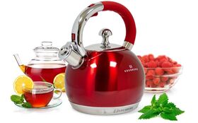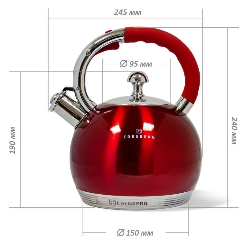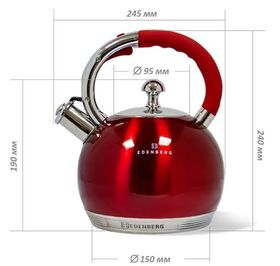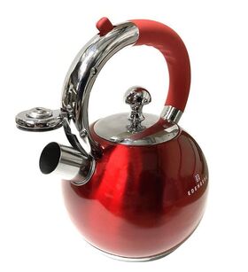 Емкость: 3,0 л. Автоматическое открытие свистка. Свисток сигнализирует о кипящей воде. Удобная, не нагревающаяся ручка. Подходит для всех типов плит, включая индукционные. Материал корпуса нержавеющая сталь. Термоизолированная ручка, со свистком Материал ручки бакелит Вид ручки фиксированная. Особенностью чайника является тройное капсульное дно, толщиной 2 см, равномерно распределяющее тепло.
