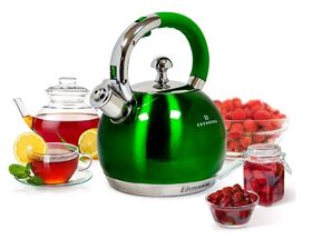 Емкость: 3,0 л. Автоматическое открытие свистка. Свисток сигнализирует о кипящей воде. Удобная, не нагревающаяся ручка. Подходит для всех типов плит, включая индукционные. Материал корпуса нержавеющая сталь. Термоизолированная ручка, со свистком Материал ручки бакелит Вид ручки фиксированная. Особенностью чайника является тройное капсульное дно, толщиной 2 см, равномерно распределяющее тепло.