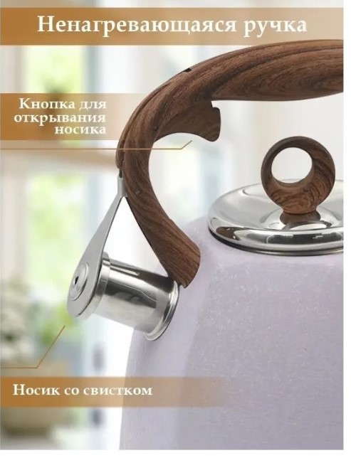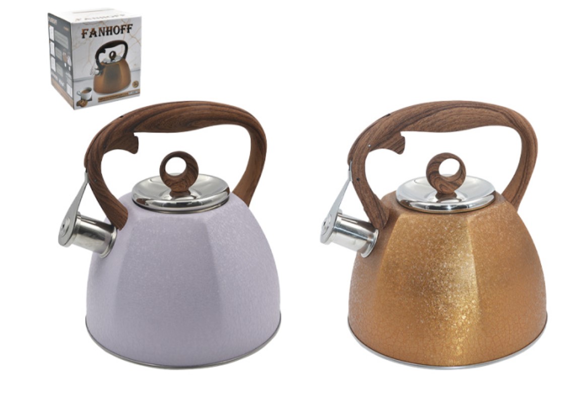 Чайник изготовлен из высококачественной нержавеющей стали c декоративным покрытием. Термостойкая, эргономичная ручка, выполненная из нержавеющей стали и бакелита, удобно лежит в руке. Носик чайника оснащен насадкой-свистком, который позволяет контролировать процесс кипячения или подогрева воды. Особая конструкция дна чайничка способствует высокой теплопроводности и равномерному распределению тепла. Эстетичный и функциональный, с современным дизайном чайник для плиты украсит любую кухню и создаст атмосферу домашнего уюта. Компактный чайник со свистком пригодится для отдыха на природе, для пикников, походов, охота, рыбалка и поездок за город. Вместе с другими предметами посуды, чайник со свистком станет идеальным и недорогим оснащением кухни. Чайник подходит для индукционной плиты, газовой плиты, стеклокерамической плиты и электрической плиты.