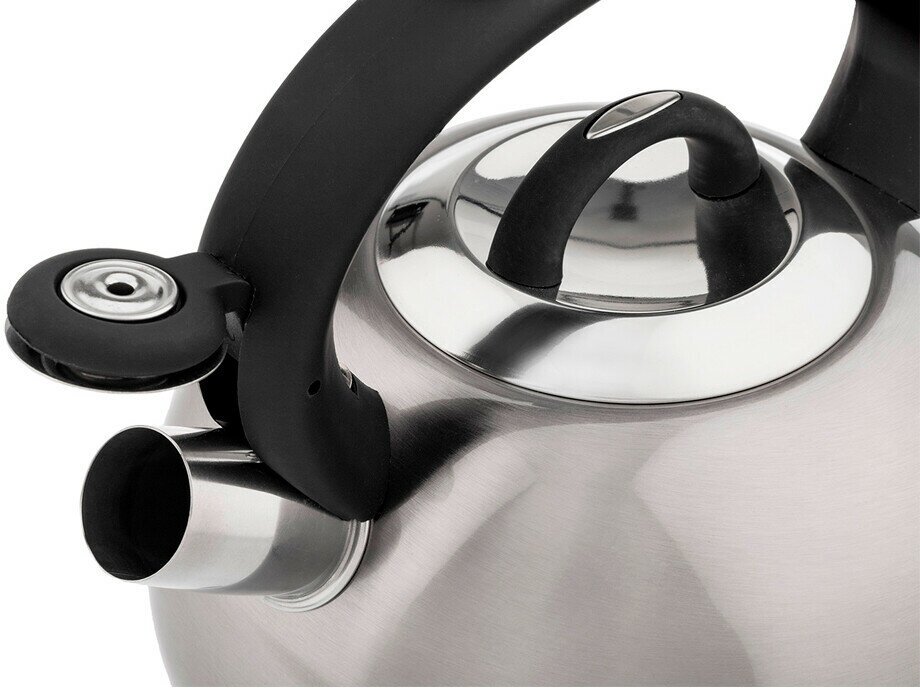Чайник для плиты оснащен свистком, встроенным в специальную крышечку, закрывающую носик прибора. При закипании воды свисток оповещает о необходимости отключить конфорку. Благодаря этому обеспечивается безопасная эксплуатация чайника. Если же данный свист вам мешает, то можно поднять крышечку со свистком, нажав на кнопку на ручке чайника. Промывать чайник изнутри при наличии загрязнений очень удобно за счет полностью съемной крышки.