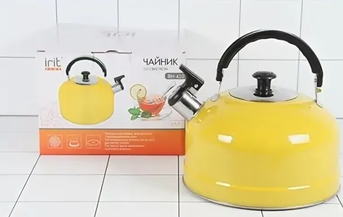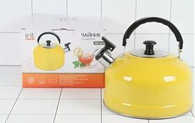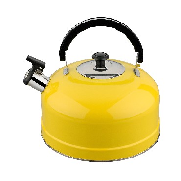 Чайник из нержав стали со свистком, объем 2,5 л. Изготовлен из высококачественной нержавеющей стали, однослойное дно. Подвижная ручка из термостойкого пластика. Ручка не нагревается. ЦВЕТ ЖЕЛТЫЙ. полезный объем 2 л