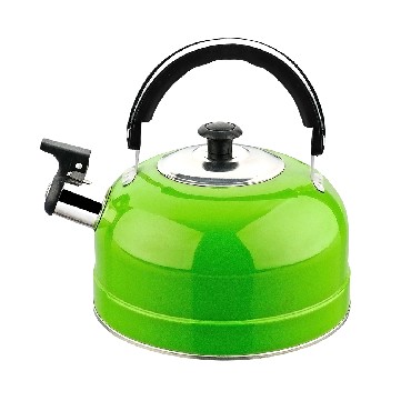 Чайник из нержав стали со свистком, объем 2,5 л. Изготовлен из высококачественной нержавеющей стали, однослойное дно. Подвижная ручка из термостойкого пластика. Ручка не нагревается. ЦВЕТ ЗЕЛЕНЫЙ. полезный объем 2 л
