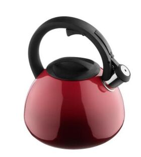 Чайник изготовлен из высококачественной нержавеющей стали. Бакелитовые ручки чайника практически не нагреваются, а курковый механизм позволяет легко поднимать насадку-свисток. Чайник имеет цветное внешнее покрытие, цвет красный. Широкое цельнометаллическое однослойное дно распределяет тепло равномерно по всей поверхности, что обеспечивает быструю скорость закипания воды и устойчивость изделия. Подходит для всех видов плит.