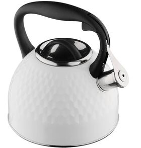 Чайник ТМ Катунь выполнен из безопасной и экологичной нержавеющей стали, декорирован с наружной стороны узором ромбы и белым декоративным покрытием.