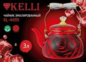 Чайник Kelli KL-4495 эмалированный. Объем: 3 литра. 3-хслойное внутреннее и внешнее эмалированное покрытие. Эмалевое покрытие защищает пищу от проникновения ионов металлов, к тому же, на гладкой поверхности эмали не способны размножаться бактерии. Удобный носик. Удобная керамическая ручка не нагревается. Неповторимость дизайна. Пригоден для всех видов плит.