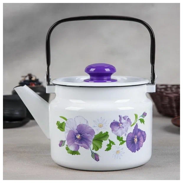 Чайник эмалированный 2л Анютины глазки Лысьвенские эмали - 1 шт., крышка - 1 шт.