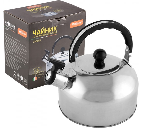 Чайник Mallony CASUAL, объем 2.5 л, из нержавеющей стали со свистком, зеркальная полировка 007297 предназначен для использования дома или в офисе.