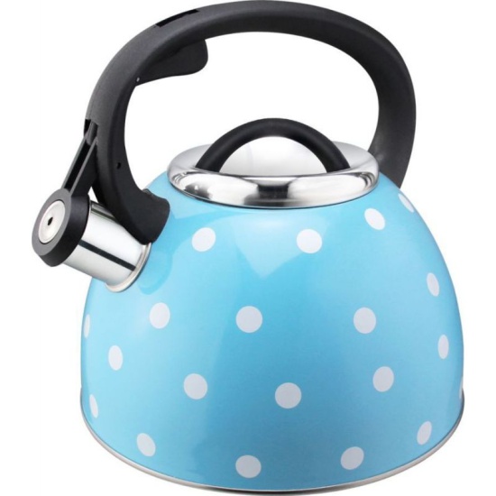 Габариты в упаковке: 19,7x19,5x20,2 см. Чайник со свистком, с крышкой, с ручкой из нейлона Полировка: матовый внутри/окрашенный - снаружи
