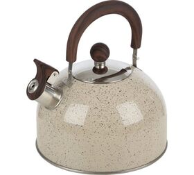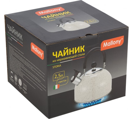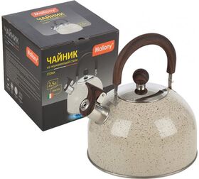 Чайник Mallony STORIA объем 2.5 л из нержавеющей стали со свистком окрашенный ручка под дерево 007190 предназначен для использования дома или в офисе.