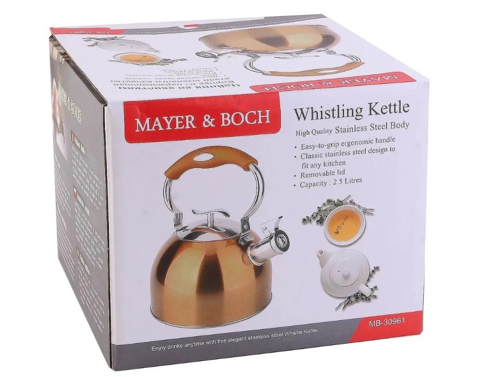 Чайник Mayer & Boch изготовлен из нержавеющей стали, что делает его весьма гигиеничным и устойчивым к износу при длительном использовании.