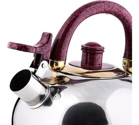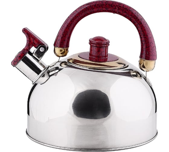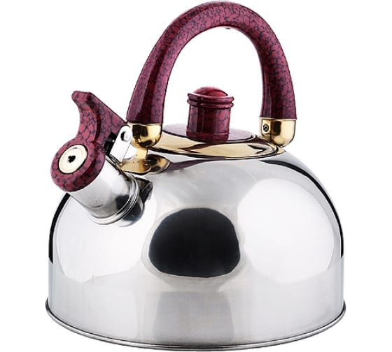 Носик чайника оснащен насадкой-свистком, который позволяет контролировать процесс кипячения или подогрева воды. Поверхность чайника гладкая зеркальная, что облегчает уход за ним.