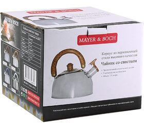 Чайник для плиты MAYER&BOCH изготовлен из высококачественной нержавеющей стали (201). Изделия из нержавеющей стали не окисляются и не впитывают запахи, благодаря чему вы всегда получите натуральный, насыщенный вкус и аромат напитков.