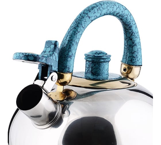Носик чайника оснащен насадкой-свистком, который позволяет контролировать процесс кипячения или подогрева воды. Поверхность чайника гладкая зеркальная, что облегчает уход за ним.