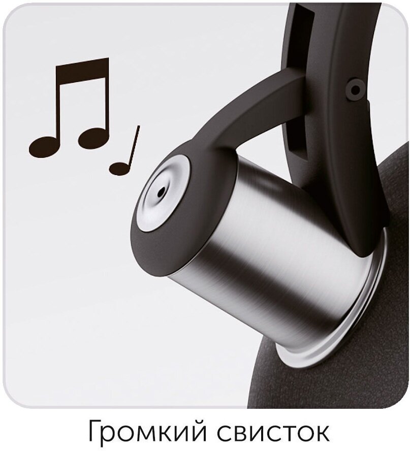 Чайник оснащен свистком, за счет чего вовремя сигнализирует о закипании.