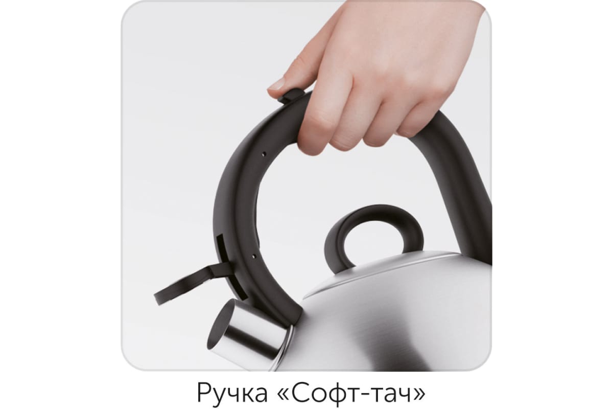 Эргономичная ручка с покрытием софт-тач выполнена из термостойкого материала, поэтому не нагревается, позволяя пользоваться чайником без прихваток. За счет удачно расположенной кнопки на ручке и широкому носику наполнять чайник гораздо проще и безопаснее. Плотно прилегающая крышка устраняет риски обжечься.