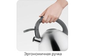 Эргономичная ручка выполнена из термостойкого материала, поэтому не нагревается, позволяя пользоваться чайником без прихваток. За счет удачно расположенной кнопки на ручке и широкому носику наполнять чайник гораздо проще и безопаснее. Плотно прилегающая крышка устраняет риски обжечься.
