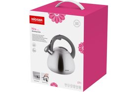 Чайник для всех плит со свитком 2,7л, серия NITA 726902 выполнен из нержавеющей стали 18/10 и подходит для любых типов плит: газовых, индукционных, электрических, галогеновых, стеклокерамических.