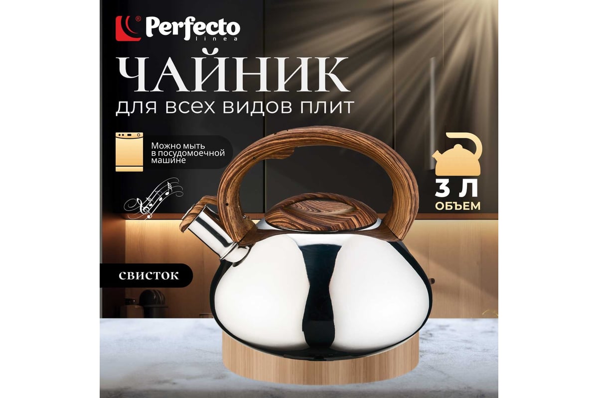 Чайник PERFECTO LINEA со свистком 3 л Hibiscus 52-330004 предназначен для использования в офисе или дома.
