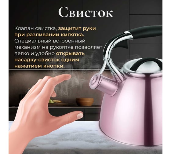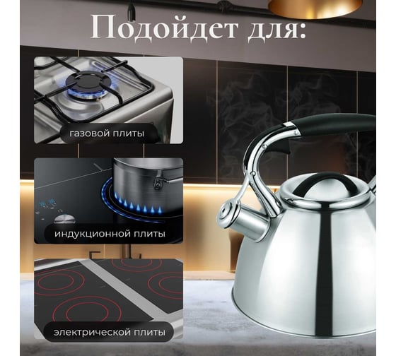 Чайник PERFECTO LINEA со свистком 3 л Jasmine 52-330002 предназначен для использования в офисе или дома.