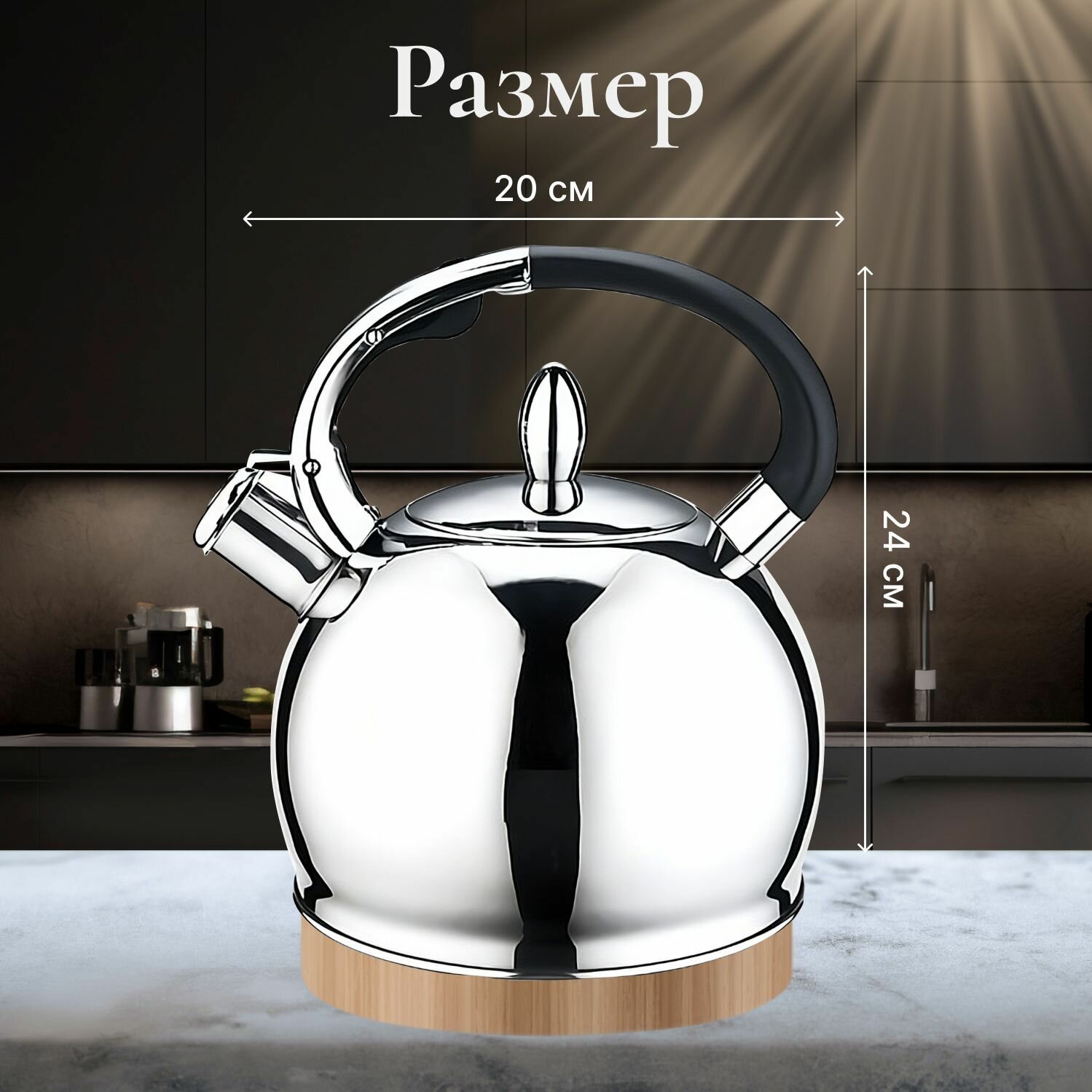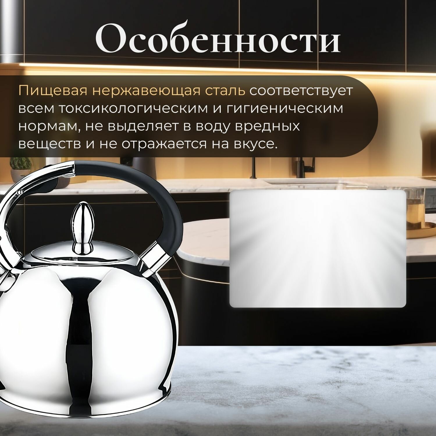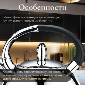 Пищевая нержавеющая сталь, из которой изготовлен чайник, соответствует всем токсикологическим и гигиеническим нормам, не выделяет в воду вредных веществ и не отражается на ее вкусе. Чайник можно мыть в посудомоечной машине. Пригоден для газовых, электрических, стеклокерамических и индукционных плит.