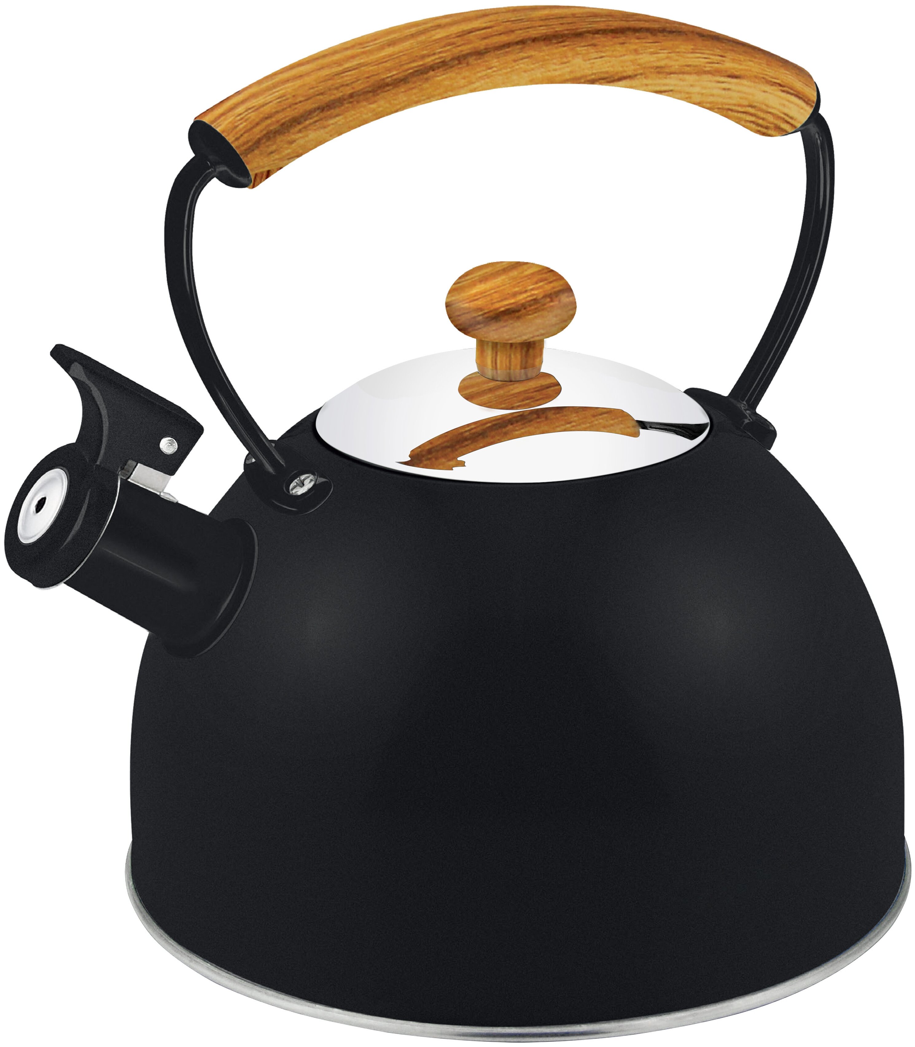 P-650206 Napoli Чайник со свистком 2л Модель выполнена по специальной пресс-форме с толщиной боковых стенок 0,4мм. Трехслойное дно, выполненное по технологии капсулирования, не деформируется и служит для равномерного распределения тепла. Ненагревающаяся деревянная ручка. Безопасный и громкий свисток вовремя проинформирует, что вода закипела. Высокопрочное покрытие чайника сохраняет отличный внешний вид изделия намного дольше.