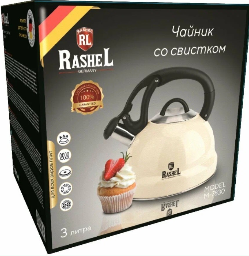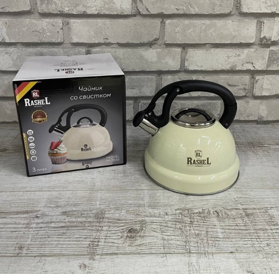 Чайник из нержавеющей стали RASHEL 3 л, со свистком, кремовый М-7830 предназначен для бытового использования. Современный и функциональный чайник будет замечательно смотреться на любой кухне. Подходит для всех видов плит.