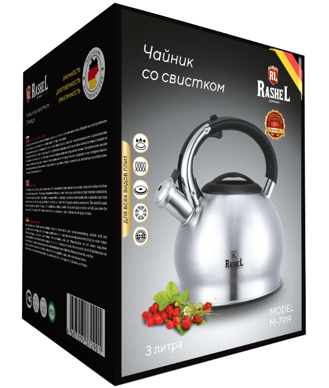 Чайник изготовлен из высококачественной нержавеющей стали. Нержавеющая сталь обладает высокой устойчивостью к коррозии, не окисляется и не впитывает посторонние запахи.