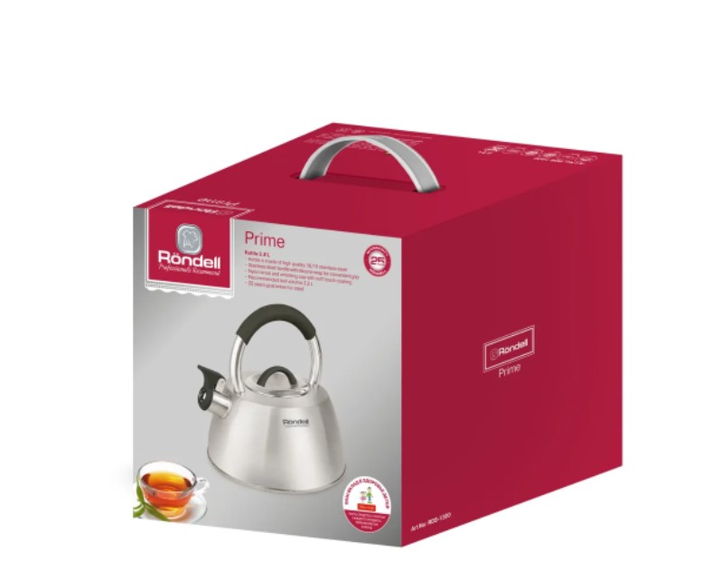 Rondell RDS-1300 – чайник из нержавеющей стали, входящий в коллекцию Prime. Его объём – 2,8 литра, этого хватит для чаепития с родственниками и друзьями. Благодаря сатинированной полировке чайник выглядит особенно элегантно. Он будет хорошо смотреться на современной кухне и может использоваться на плитах различных типах, в том числе на индукционных. Чайник оснащён прочной эргономичной ручкой из бакелита, которая хорошо лежит в ладони. На ней расположено устройство, с помощью которого можно безопасно открыть клапан на носике. Разработчики предусмотрели надёжный бакелитовый свисток со стальной сердцевиной. Он издаёт звук, по которому сразу понятно, что вода в чайнике закипела.