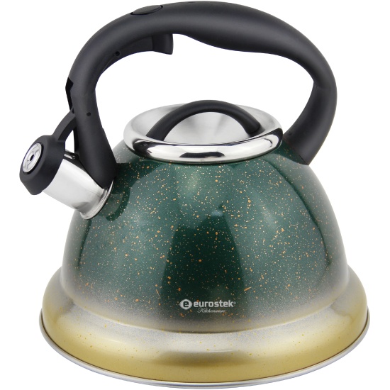 Чайник со свистком Eurostek ESK-3088 — это надежность, функциональность и стильный дизайн. Чайник выполнен из нержавеющей стали — наиболее прочного и гигиеничного материала. То есть изделие в процессе использования, не выделяет вредных веществ в воду, не меняет ее вкус и не поддается коррозии. Чайник способен сохранять тепло гораздо дольше, чем другие модели. Данная модель станет прекрасным украшением вашей кухни благодаря оригинально оформленной ручке.