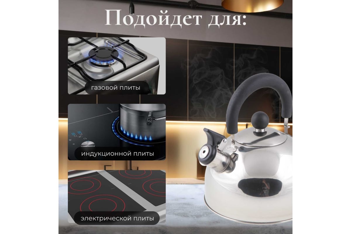 Чайник PERFECTO LINEA со свистком 1.5 л серебристый металлик Holiday 52-112018 предназначен для использования в офисе или дома.