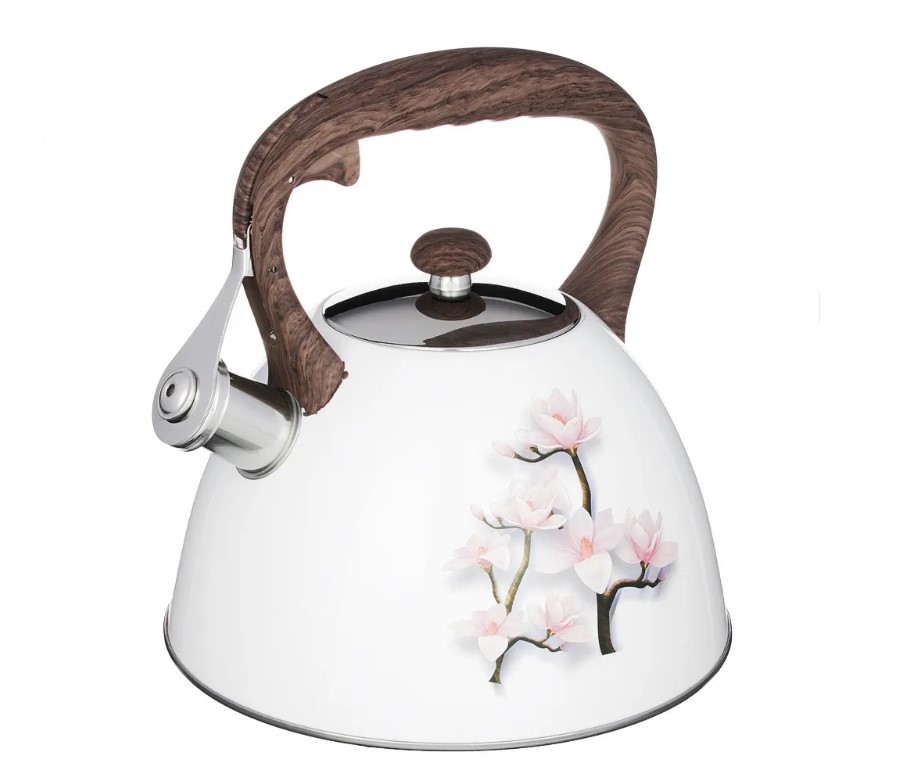 Хотите, чтобы вода для чая закипала быстрее и еще долго оставалась горячей? Ваша мечта уже в шаге от вас! Чтобы осуществить желание, достаточно купить стальной чайник Vetta Сакура. Ключевое преимущество — капсульное дно, обеспечивающее равномерный нагрев всего за несколько минут. При этом посуда еще долго не остывает, позволяя снова и снова пить любимые напитки. Корпус из нержавейки не боится ударов и падений. Он выдерживает высокую температуру и круглосуточный контакт с влагой. Среди плюсов материала — устойчивость к коррозии и нейтральное отношение к продуктам. В таком изделии вода никогда не приобретет металлический привкус.