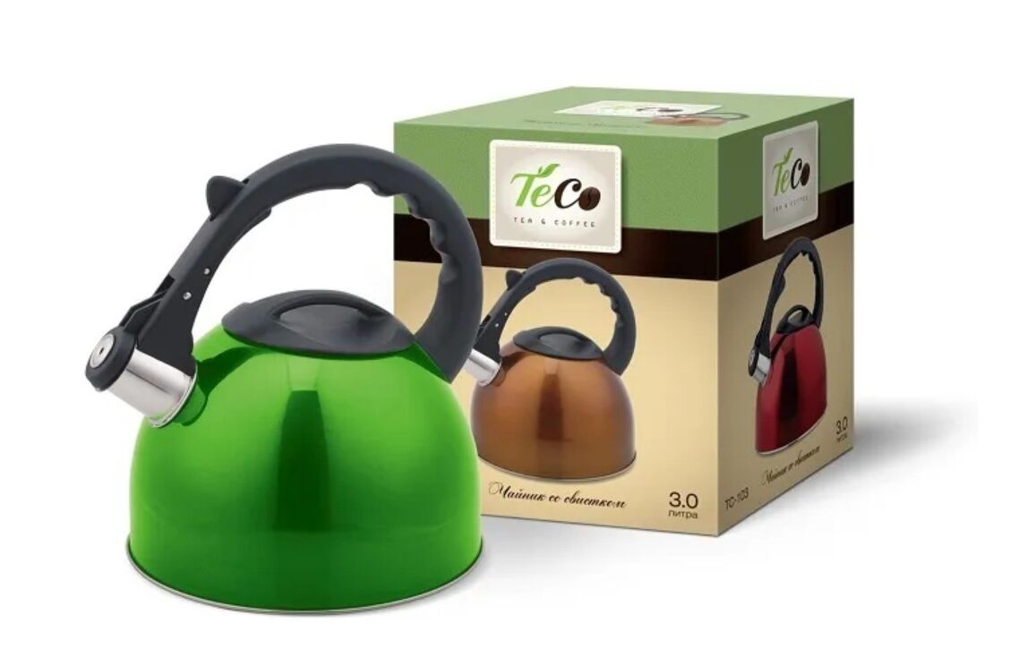 Чайник со свистком наплитный объемом 3 л. выполнен из нержавеющей стали .