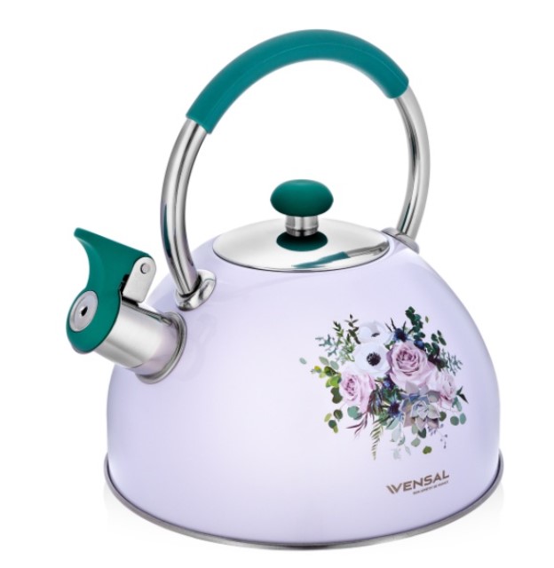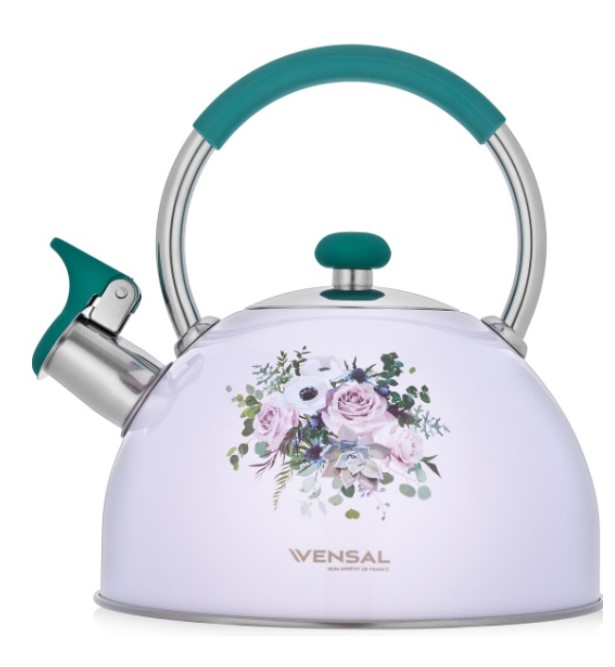 Система открывания носика на свистке чайника – управление одной рукой. Ручка имеет силиконовую насадку для безопасности открывания. Чайник с высоким носиком и свистком – большая полезная емкость. Чайник совместим со всеми типами плит.