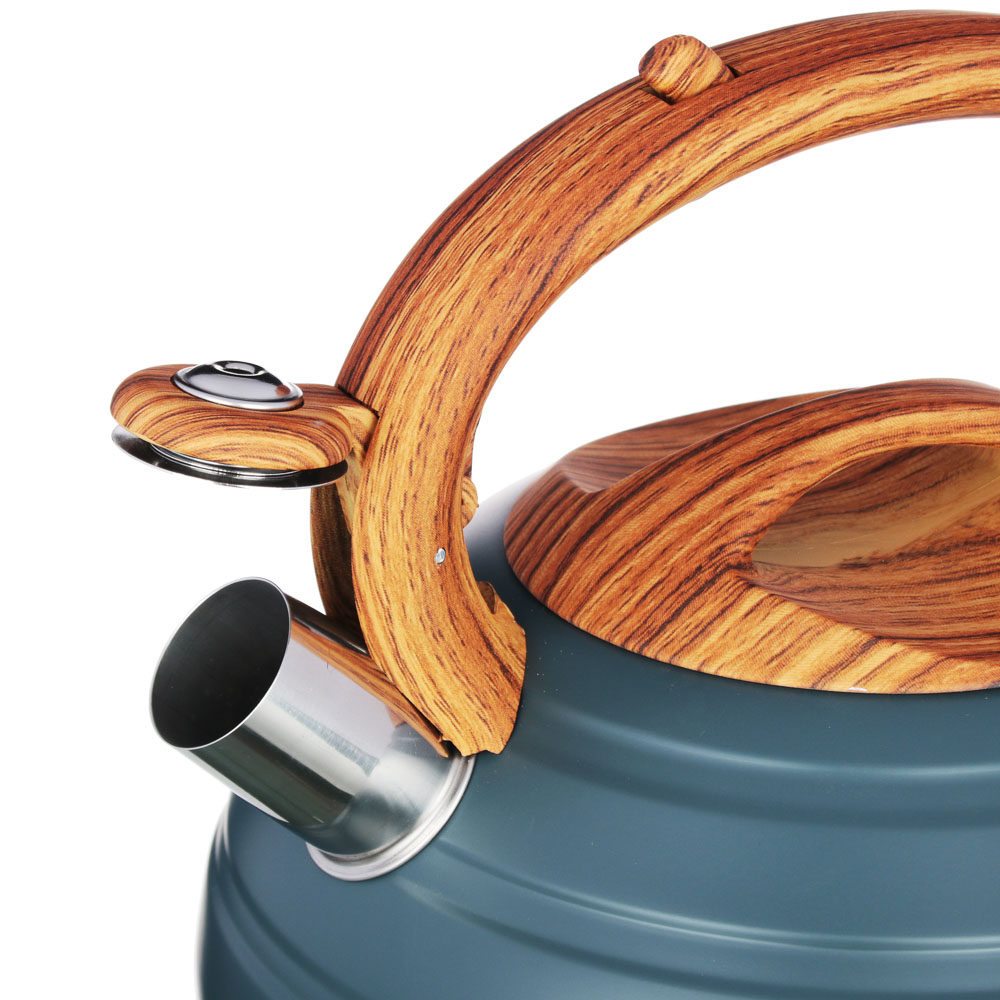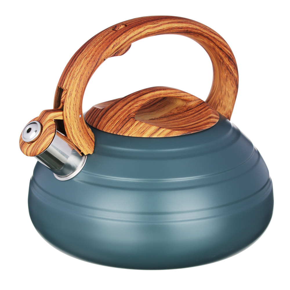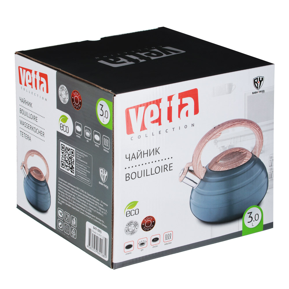 Стальной чайник Vetta “Бенуа”. Объем 3 л - удобно для большой семьи, на праздниках и дружеских посиделках: можно заварить чай на 10 человек за один раз. Материал - нержавеющая сталь: не боится воды, служит долго. Ручка удобной формы с силиконовым напылением: не скользит, хорошо лежит в руке. Чайник со свистком - не даст пропустить закипание воды. Кнопка открывания свистка на ручке - можно наливать воду из чайника одной рукой. Подходит для газовых, электрических и индукционных плит.