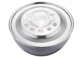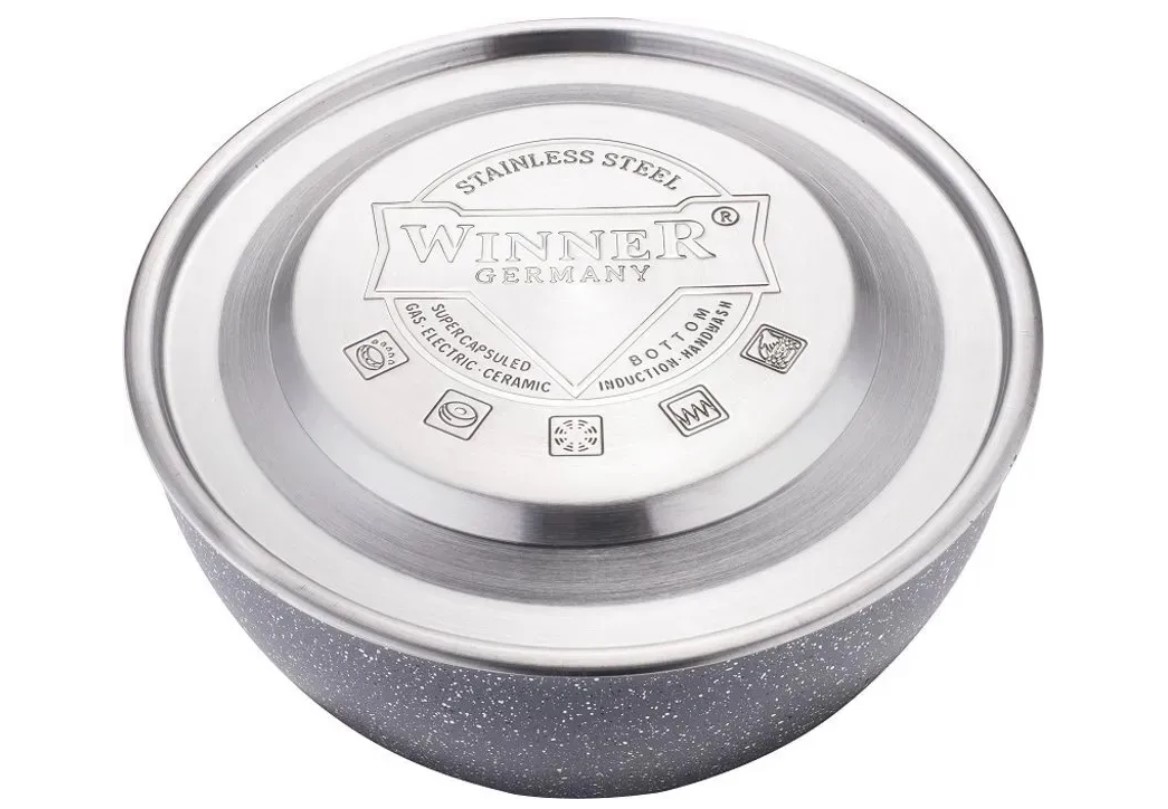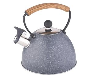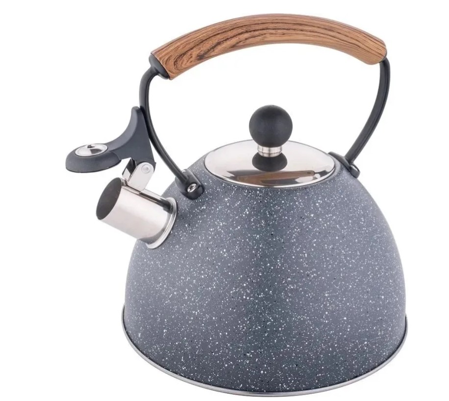 Объем: 2,5 л. Толщина стенки: 0,4 мм. Толщина дна: 2 мм. Цветной корпус под мрамор. Свисток. Ручка из пластика с силиконовым покрытием. Крышка из нержавеющей стали с пластиковой ручкой. Капсулированное дно. Подходит для использования на всех видах плит. Рекомендована ручная чистка. Состав: нержавеющая сталь.
