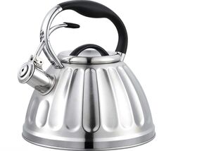 Благодаря капсулированному дну вода в чайнике нагревается быстрее и долго остается горячей без дополнительного подогрева.Специальный курковый механизм позволяет легко открывать насадку-свисток одним нажатием кнопки на ручке чайника.