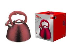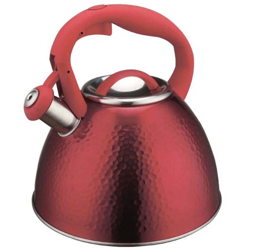 Чайник со свистком, 3,0 л, нержавеющая сталь, капсулированное индукционное дно, курковый механизм, внешнее покрытие - антипригарное цветное покрытие, устойчивое к высоким температурам.