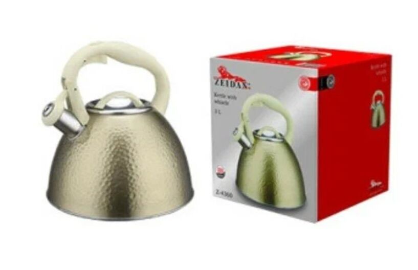 Чайник со свистком, 3,0 л, нержавеющая сталь, капсулированное индукционное дно, курковый механизм, внешнее покрытие - антипригарное цветное покрытие, устойчивое к высоким температурам, ручка с покрытием "soft-touch". Подарочная упаковка.