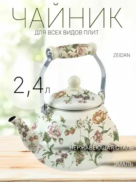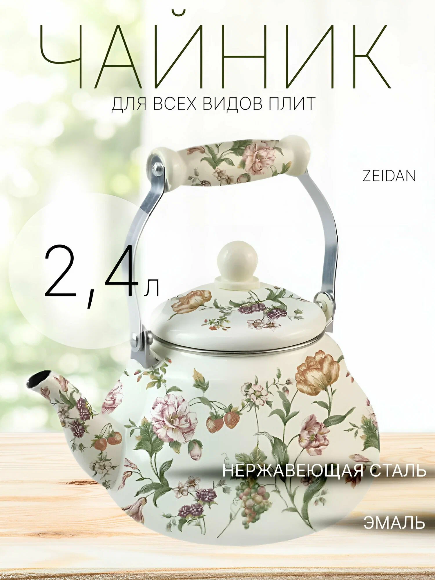 Эмалированная сталь Этот чайник идеально подходит для вашей кухни. Выполненный из эмалированной стали, он станет неотъемлемым элементом кухонного инвентаря. Чайник емкостью 2,4 литра обеспечит необходимый объем для всей семьи или компании друзей.